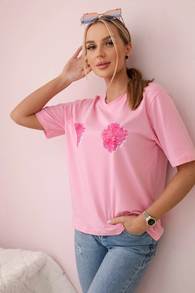 Bavlnená blúzka s kvetinovou potlačou ružový univerzálne