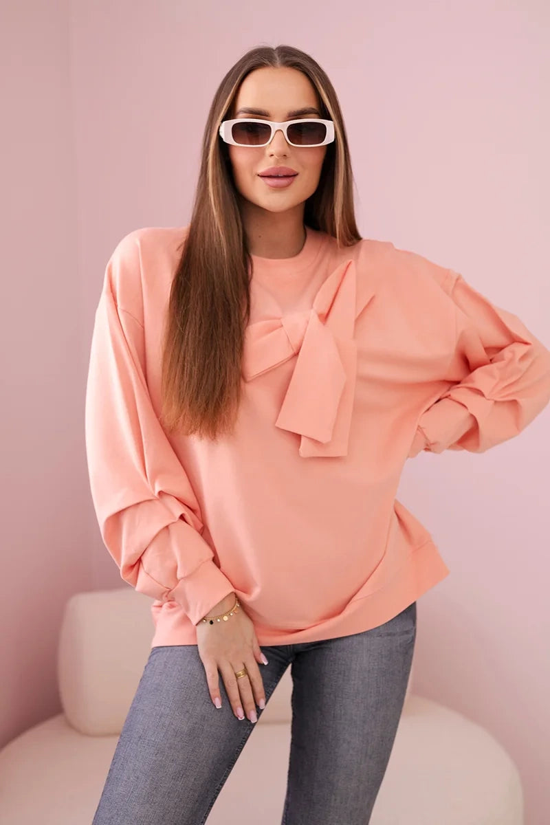 Bavlnená blúzka s mašľou marhuľa univerzálne