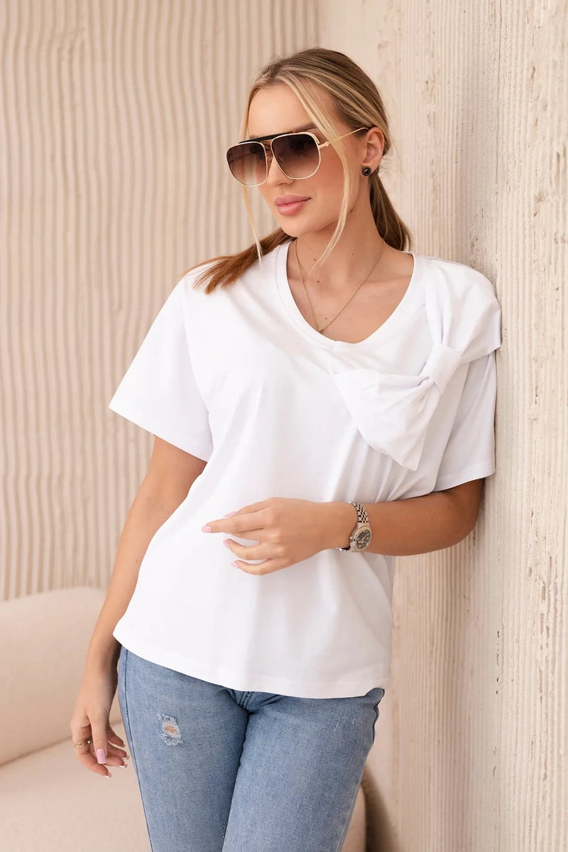 Bavlnená blúzka s ozdobnou mašľou biely univerzálne
