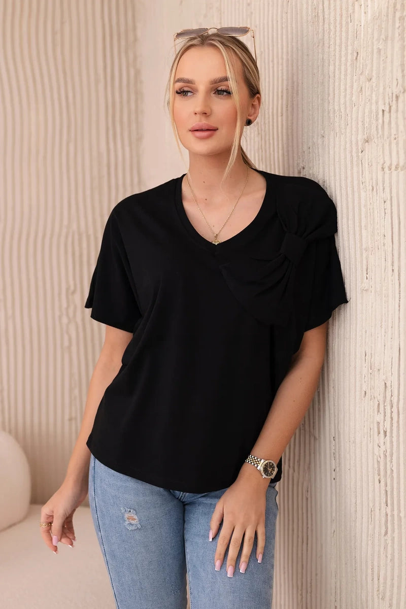 Bavlnená blúzka s ozdobnou mašľou čierny univerzálne