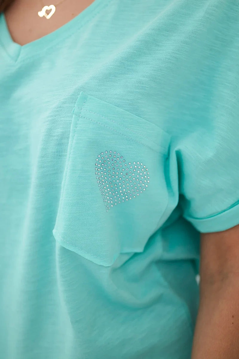 Bavlnená blúzka s vreckom mäta univerzálne