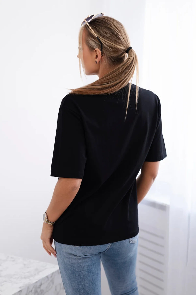 Bavlnená blúzka so srdiečkovou potlačou čierny univerzálne