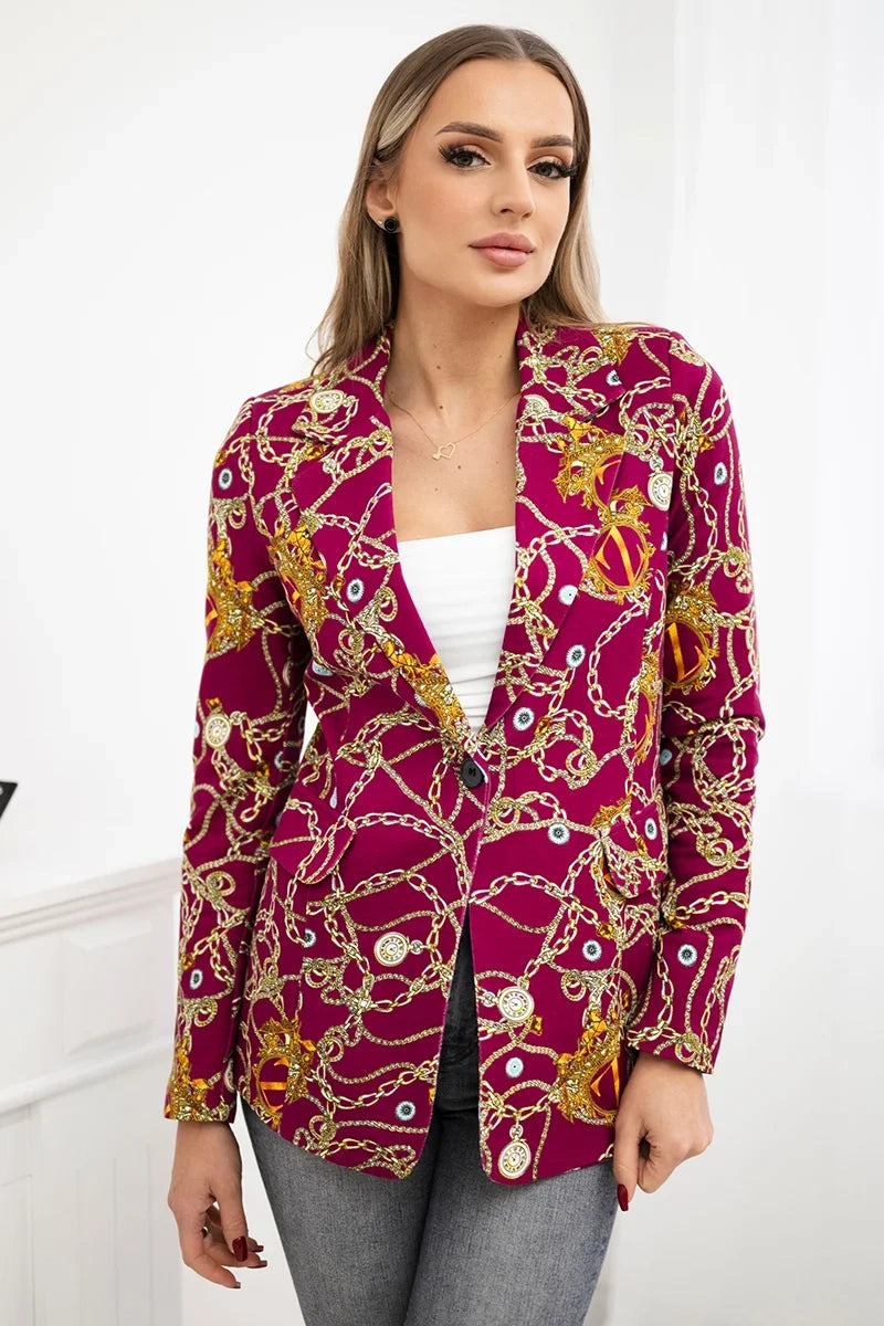 Bavlnená bunda s potlačou s gombíkom tmavo fialová M