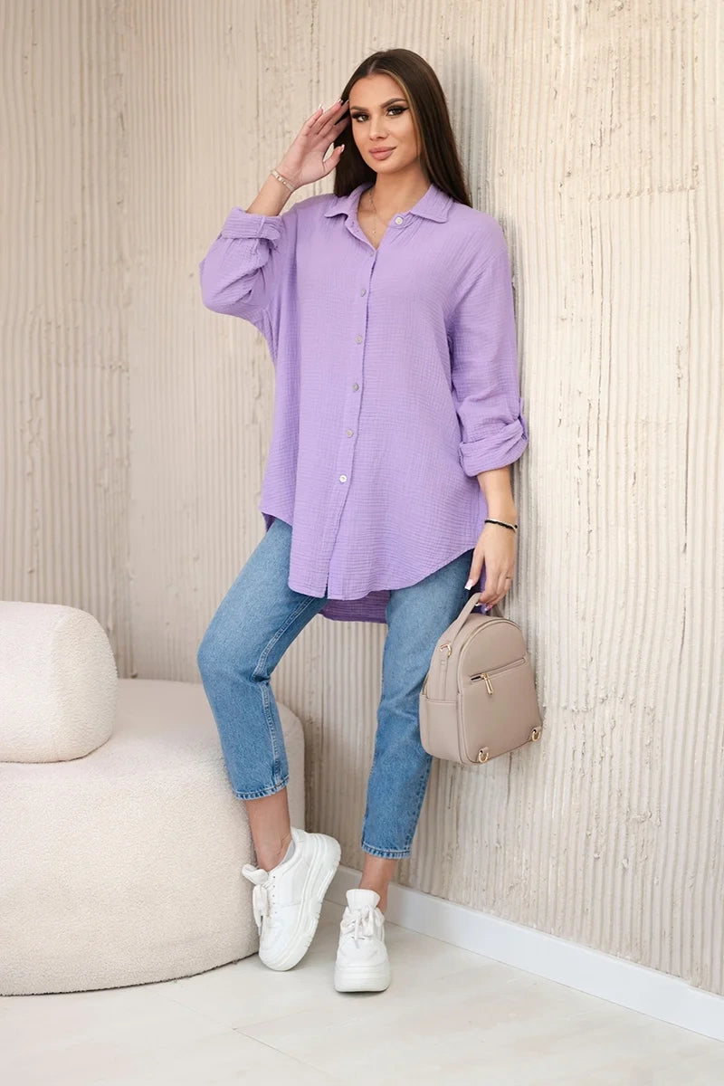 Bavlnená mušelínová košeľa oversize fialka univerzálne