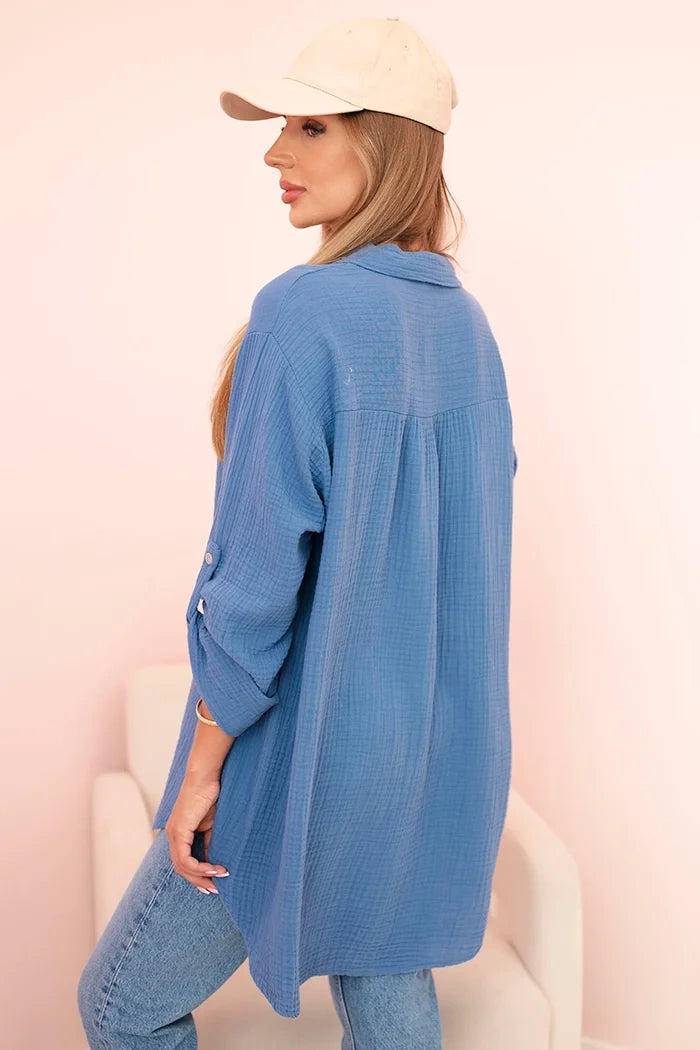 Bavlnená mušelínová košeľa oversize tmavá džínsová univerzálne