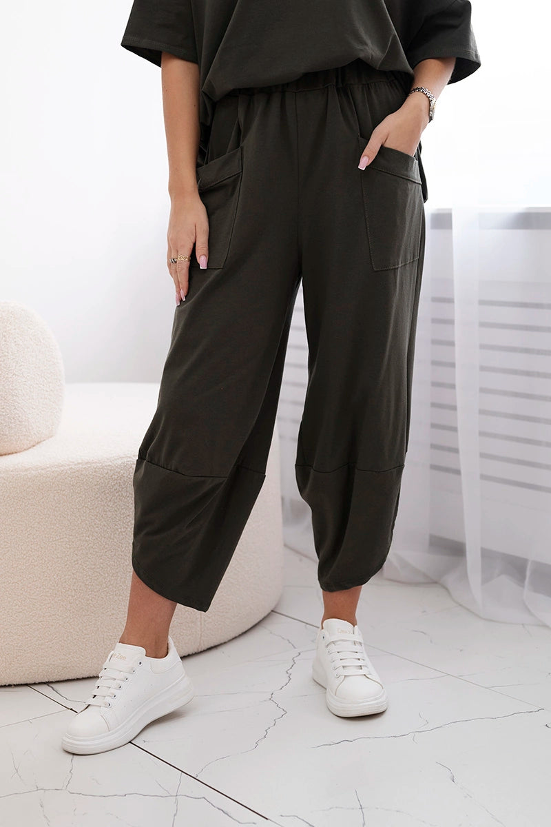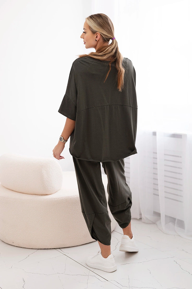 Bavlnená súprava blúzka + nohavice khaki univerzálne