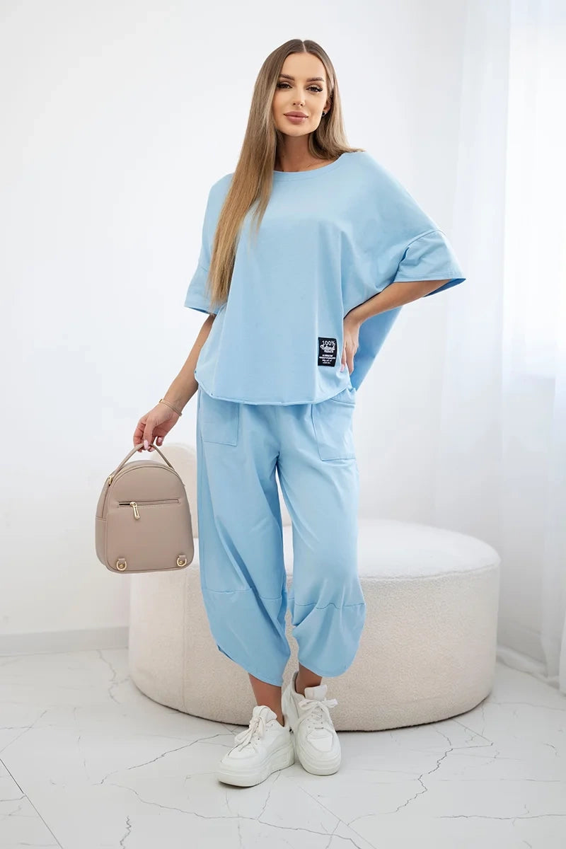 Bavlnená súprava blúzka + nohavice modrý univerzálne