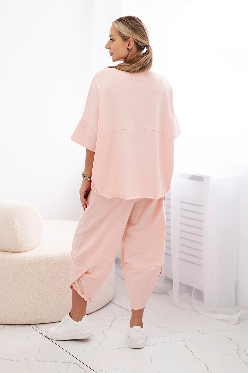 Bavlnená súprava blúzka + nohavice púder ružový univerzálne