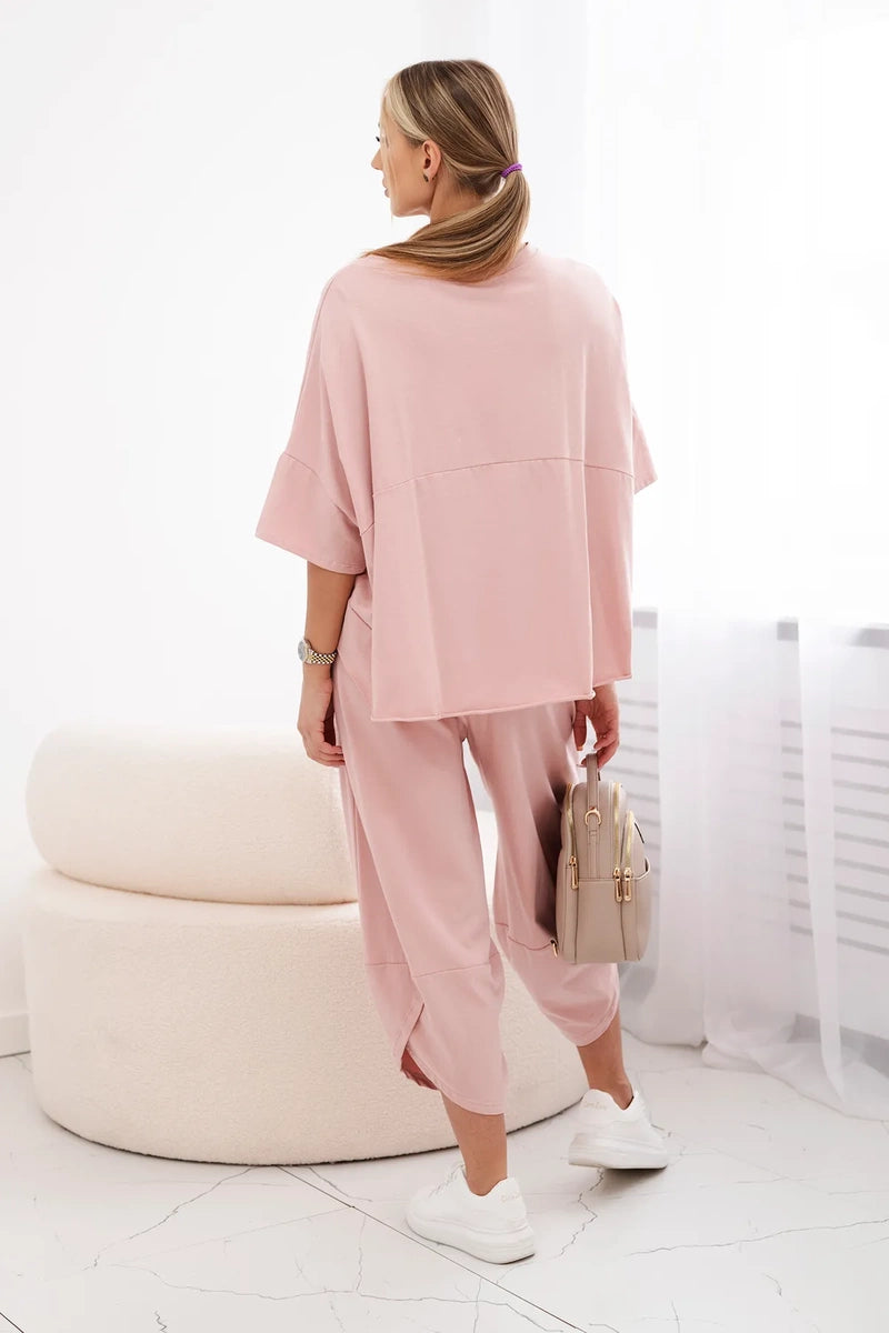 Bavlnená súprava blúzka + nohavice tmavý púder ružový univerzálne