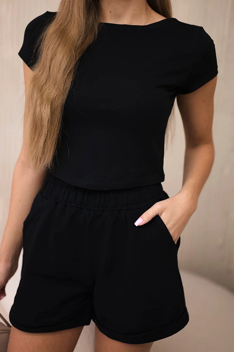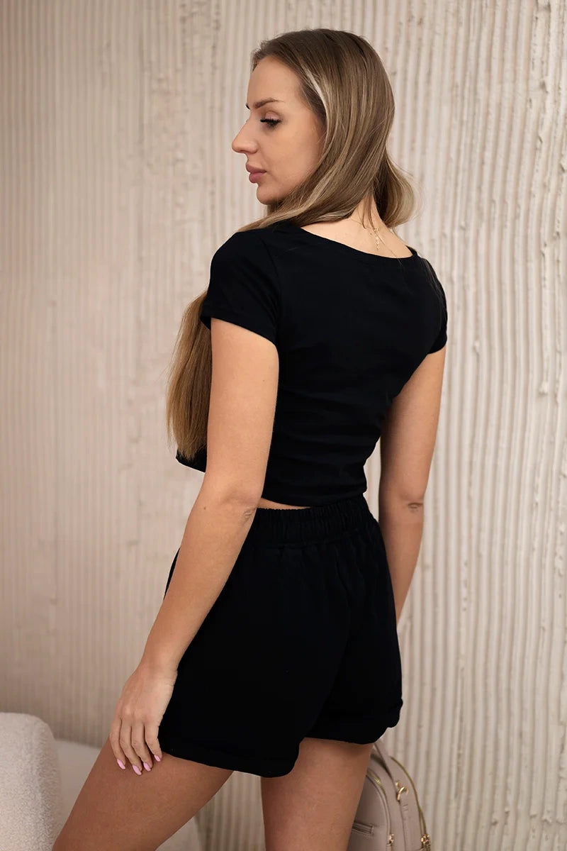 Bavlnená súprava s kraťasmi čierna univerzálne