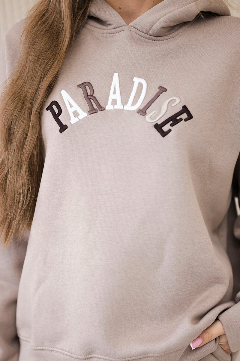 Bavlnená súprava s vyšívaným nápisom Paradise tmavo béžová univerzálne