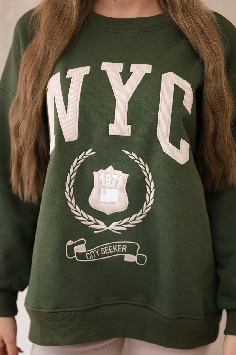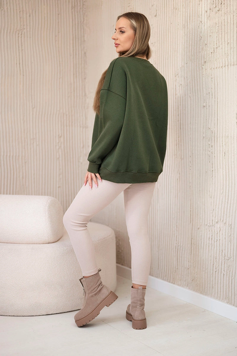 Bavlnená súprava zateplená mikina + legíny khaki univerzálne