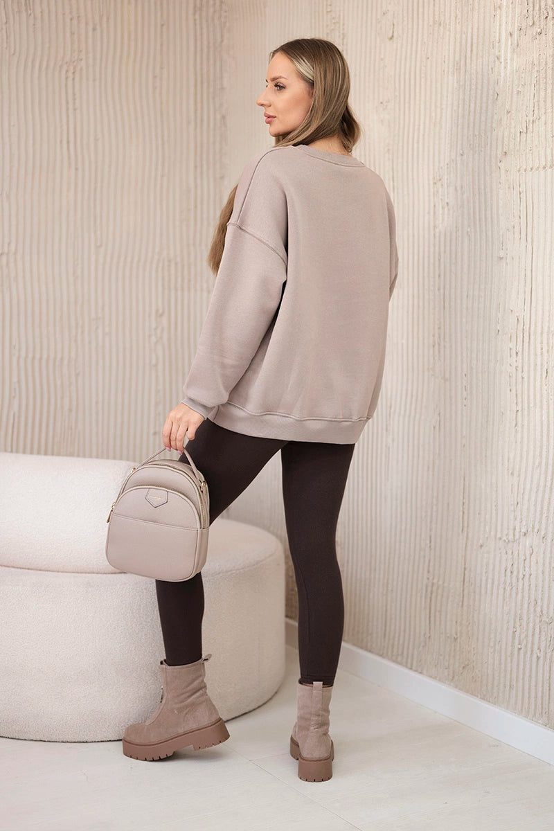 Bavlnená súprava zateplená mikina + legíny svetlobéžová univerzálne