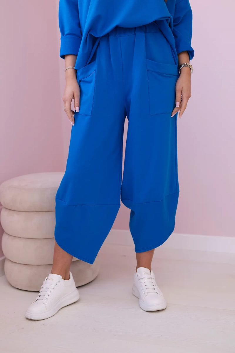 Bavlnené mikinové nohavice chrpa modrá univerzálne