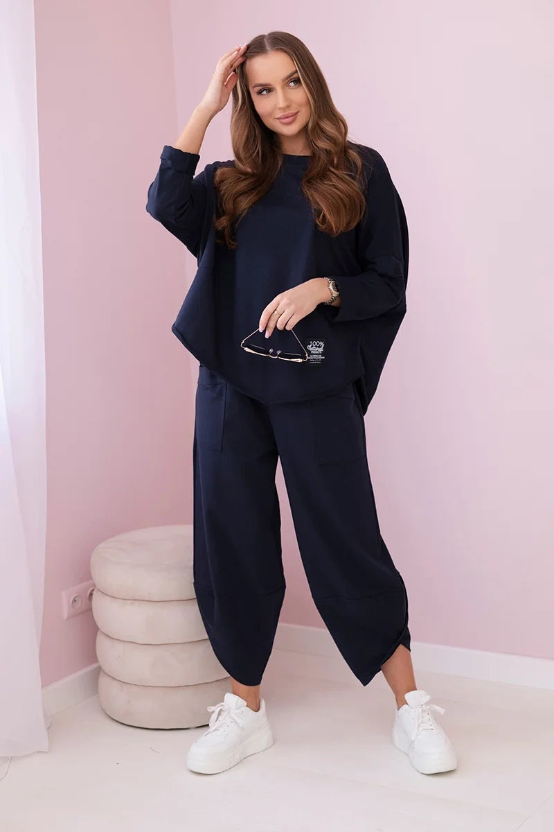 Bavlnené mikinové nohavice námorníctvo univerzálne
