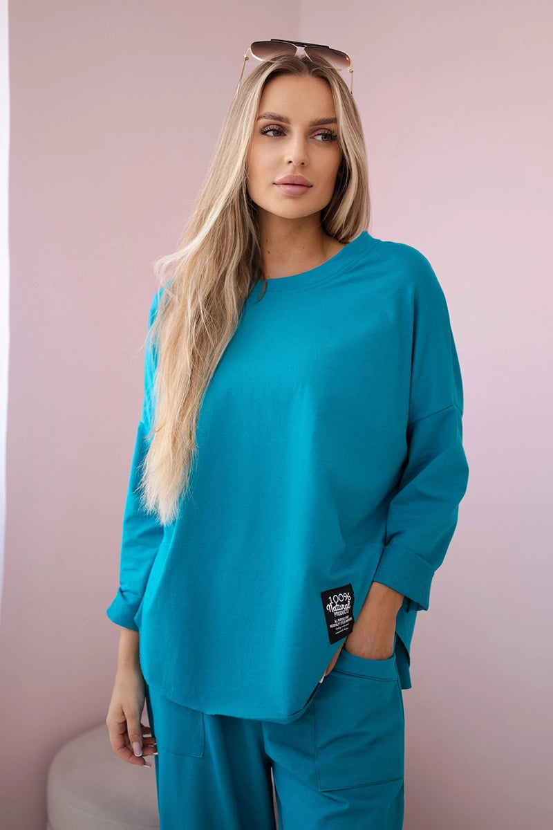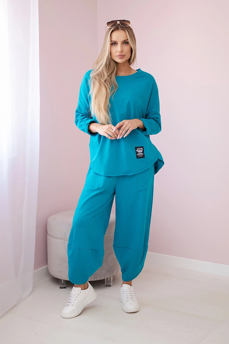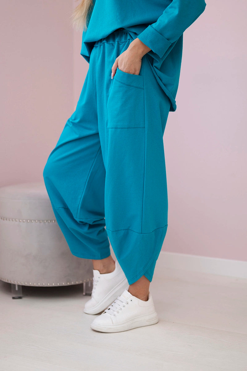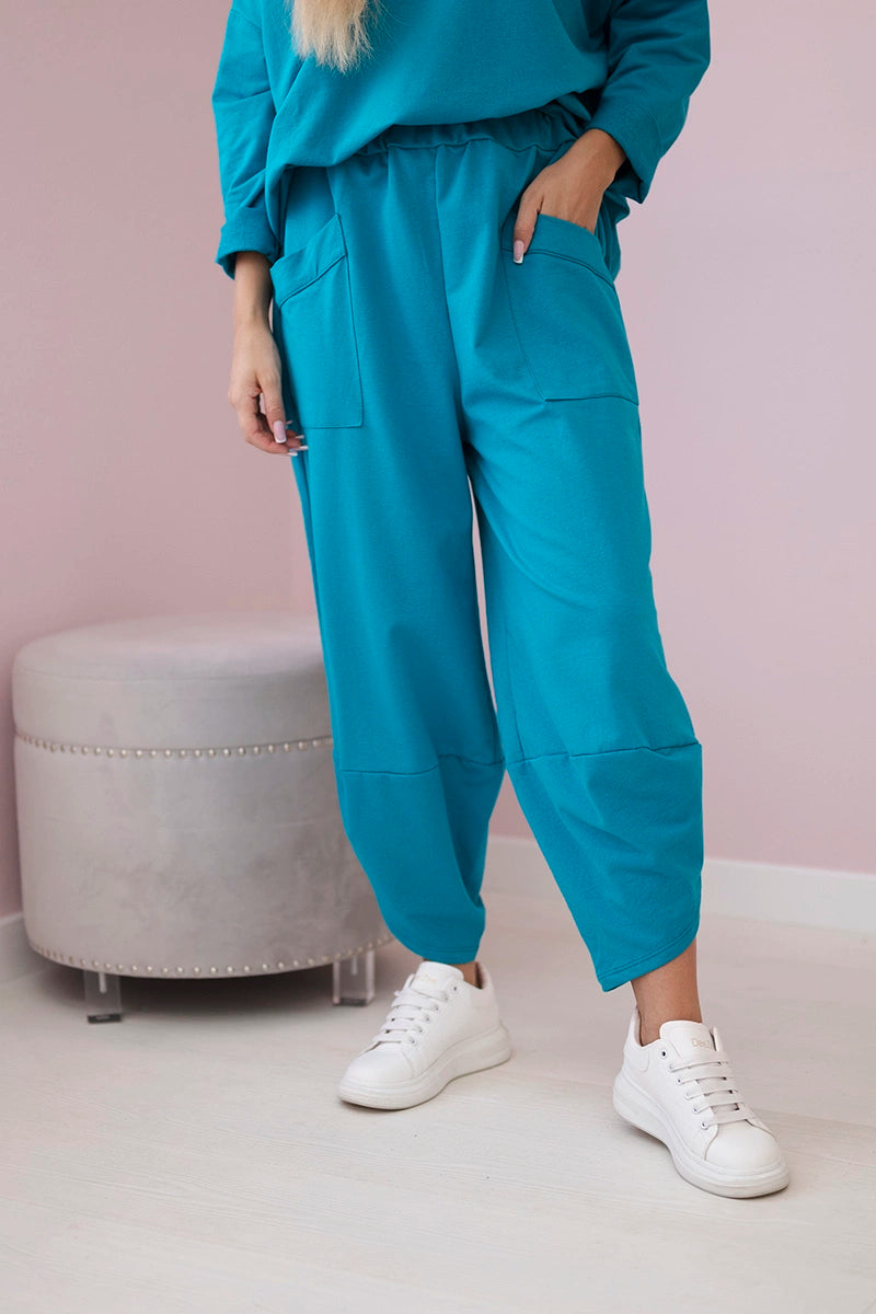 Bavlnené mikinové nohavice svetlo modrozelená univerzálne