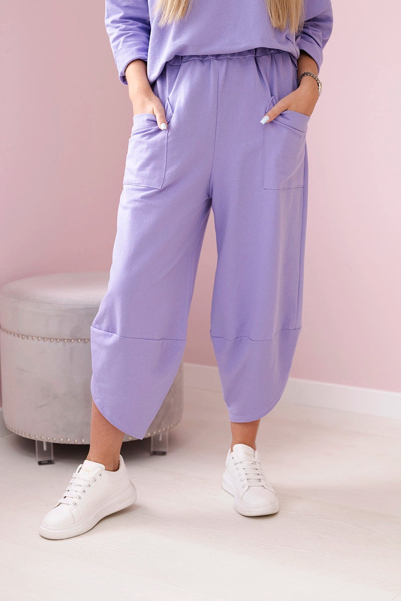 Bavlnené mikinové nohavice svetlofialová univerzálne