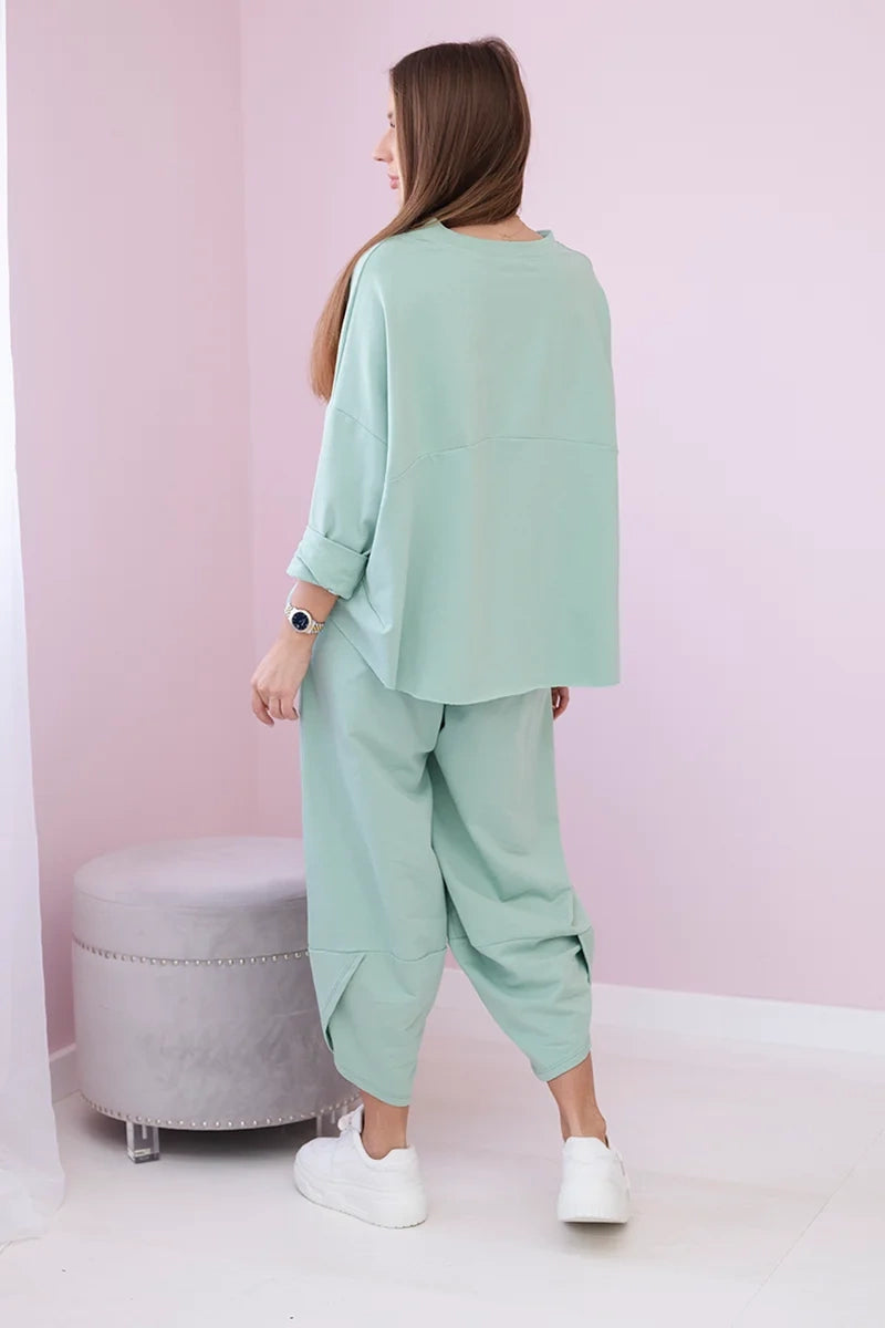 Bavlnené mikinové nohavice tmavá mäta univerzálne