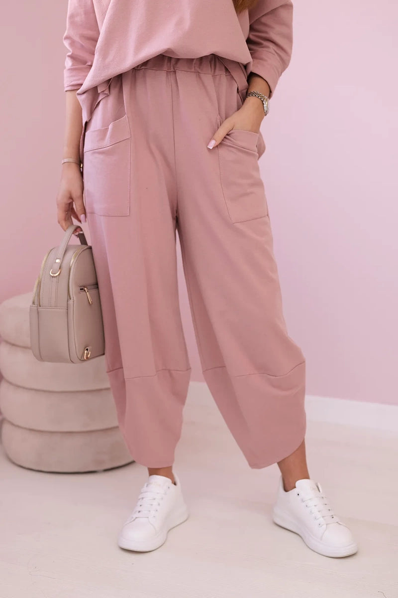 Bavlnené mikinové nohavice tmavo ružová univerzálne