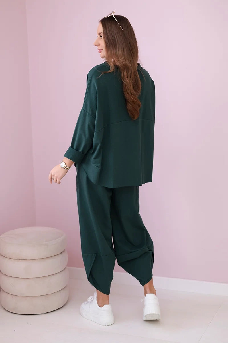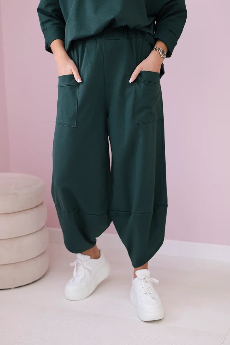 Bavlnené mikinové nohavice tmavo zelená univerzálne