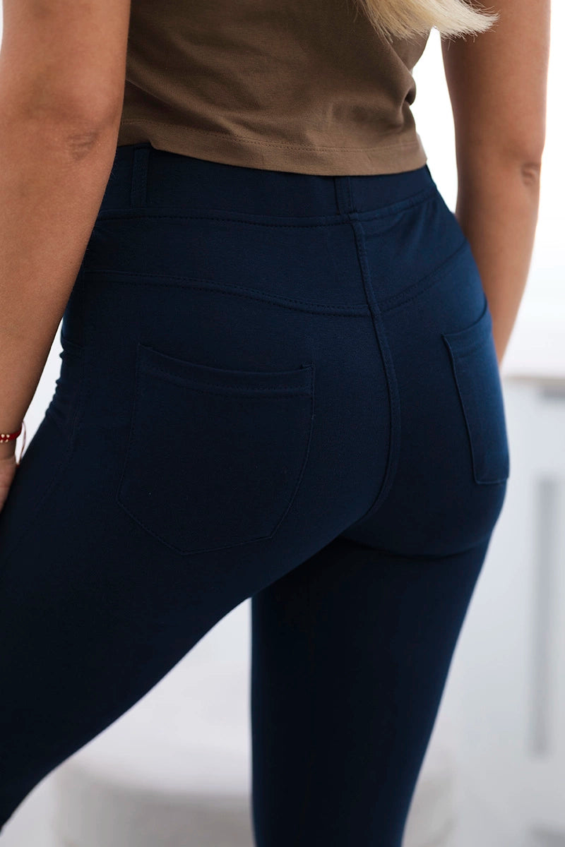 Bavlnené nohavice s vreckami vzadu námornícka modrá M