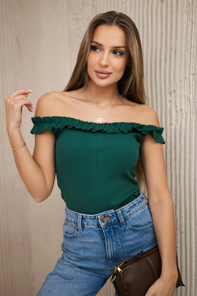 Blúzka mimo pleca s ozdobami zelená univerzálne