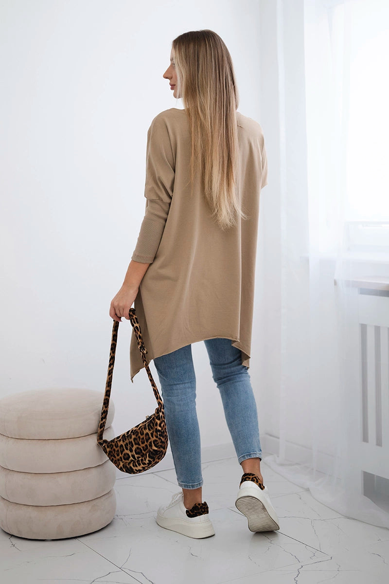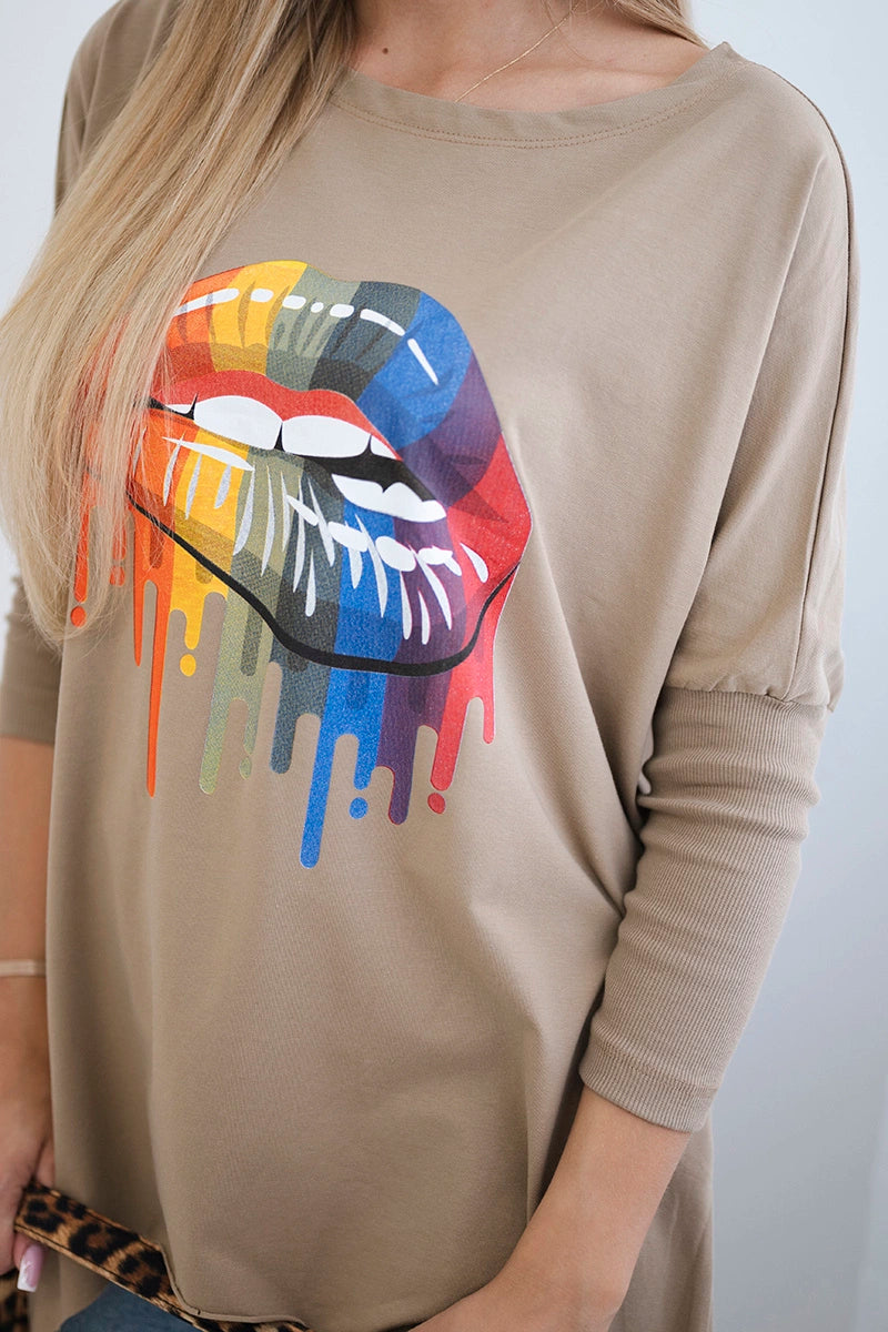 Blúzka oversize s potlačou dúhových pier farba ťavy univerzálne