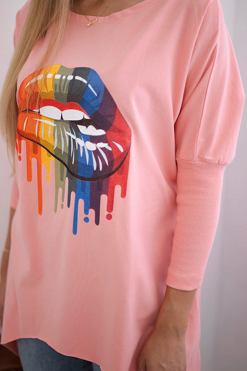 Blúzka oversize s potlačou dúhových pier marhuľa univerzálne