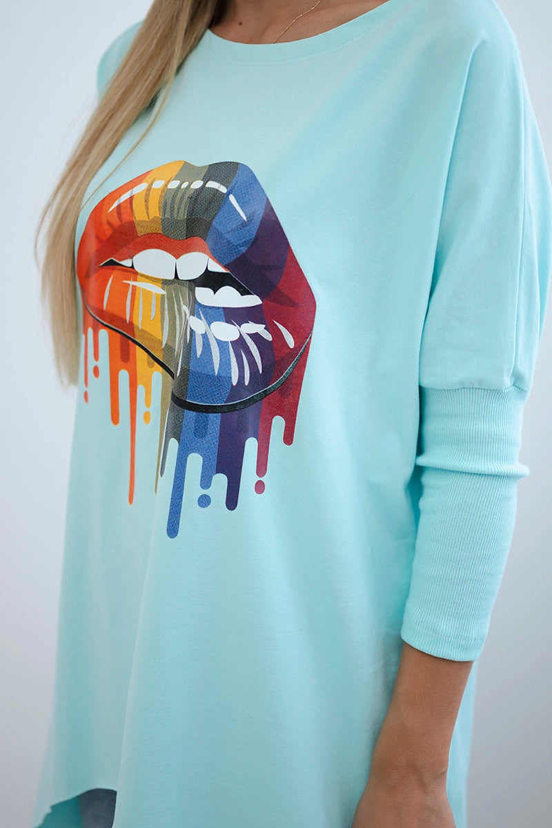 Blúzka oversize s potlačou dúhových pier mäta univerzálne