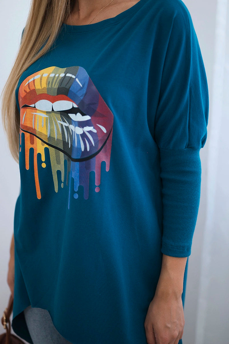Blúzka oversize s potlačou dúhových pier námorné univerzálne