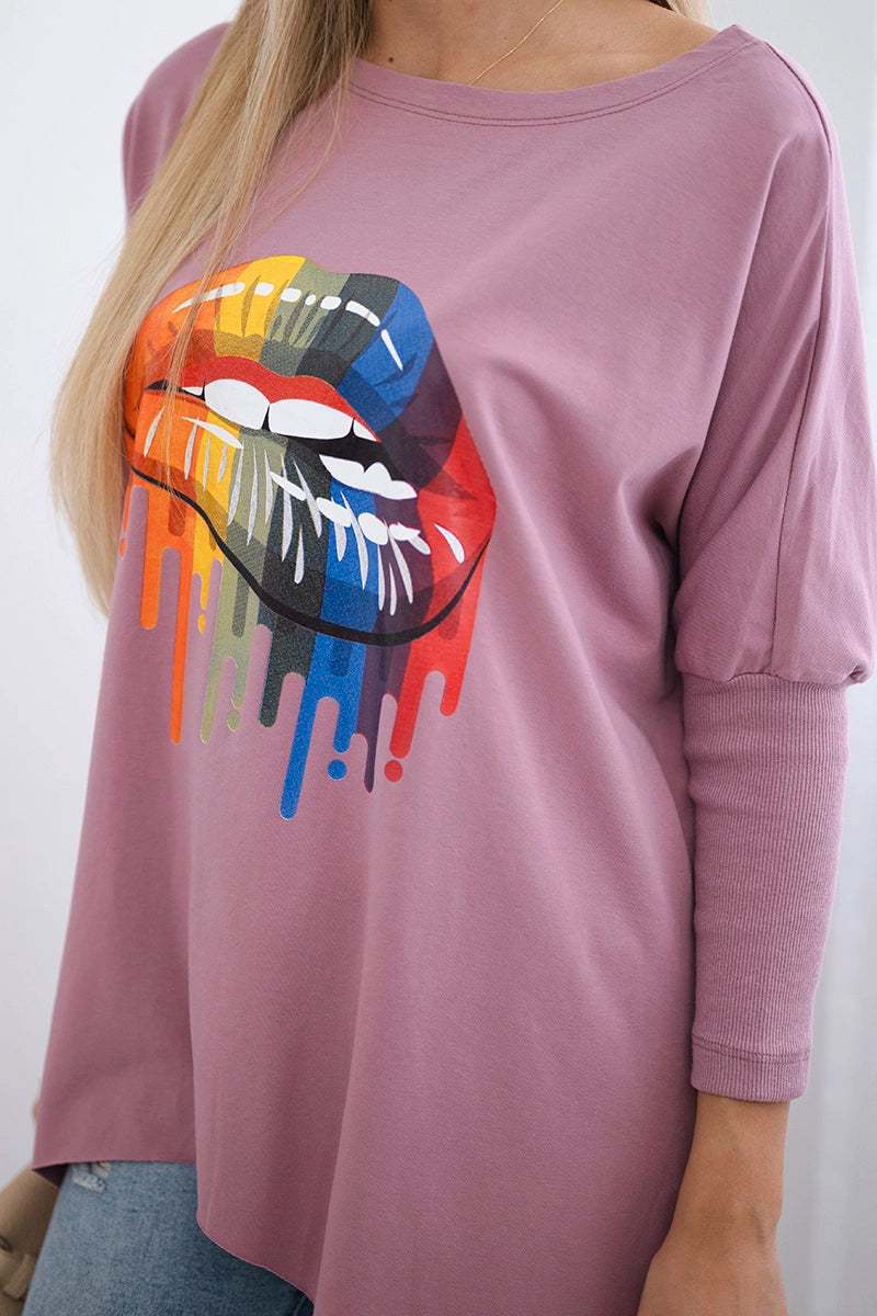 Blúzka oversize s potlačou dúhových pier tmavo ružová univerzálne