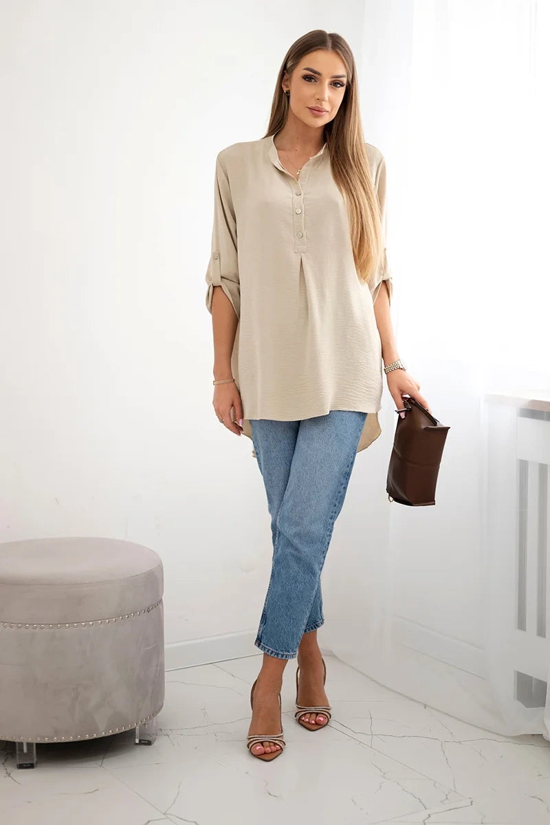 Blúzka s dlhším chrbtom tmavo béžová univerzálne