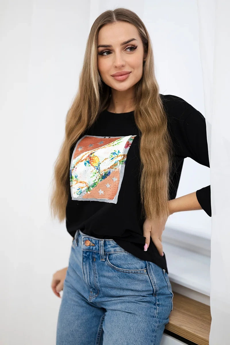 Blúzka s grafikou 3D Bird čierna univerzálne