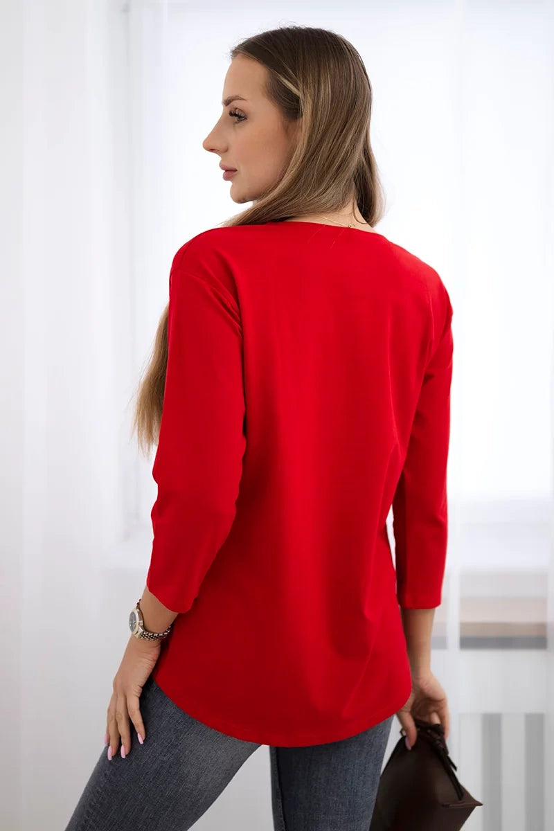 Blúzka s grafikou dievčaťa v okuliaroch 3D červená univerzálne
