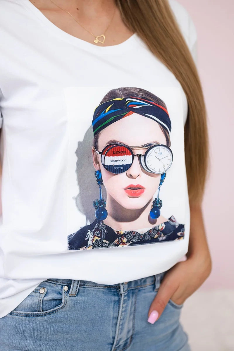Blúzka s grafikou ženy biela univerzálne