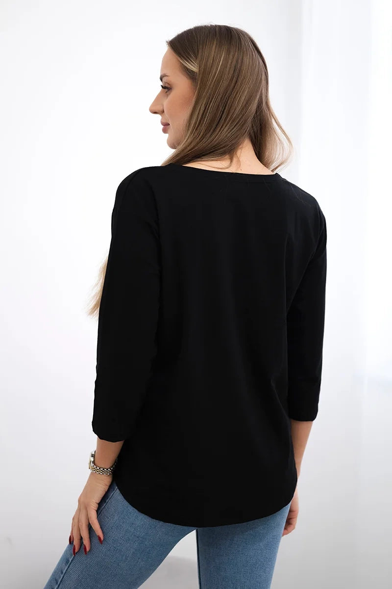 Blúzka s mačkovou grafikou 3D čierna univerzálne