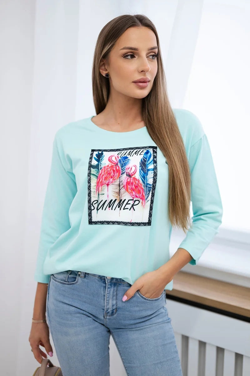 Blúzka s plameňovou grafikou 3D mäta univerzálne