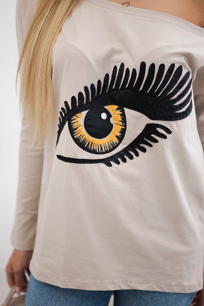 Blúzka s potlačou a dlhším chrbtom béžová univerzálne
