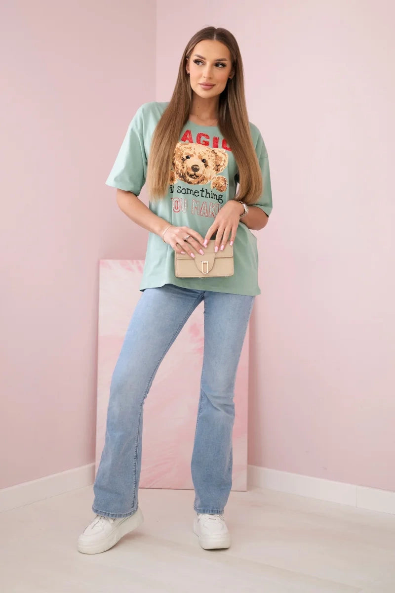 Blúzka s potlačou Magic tmavá mäta univerzálne