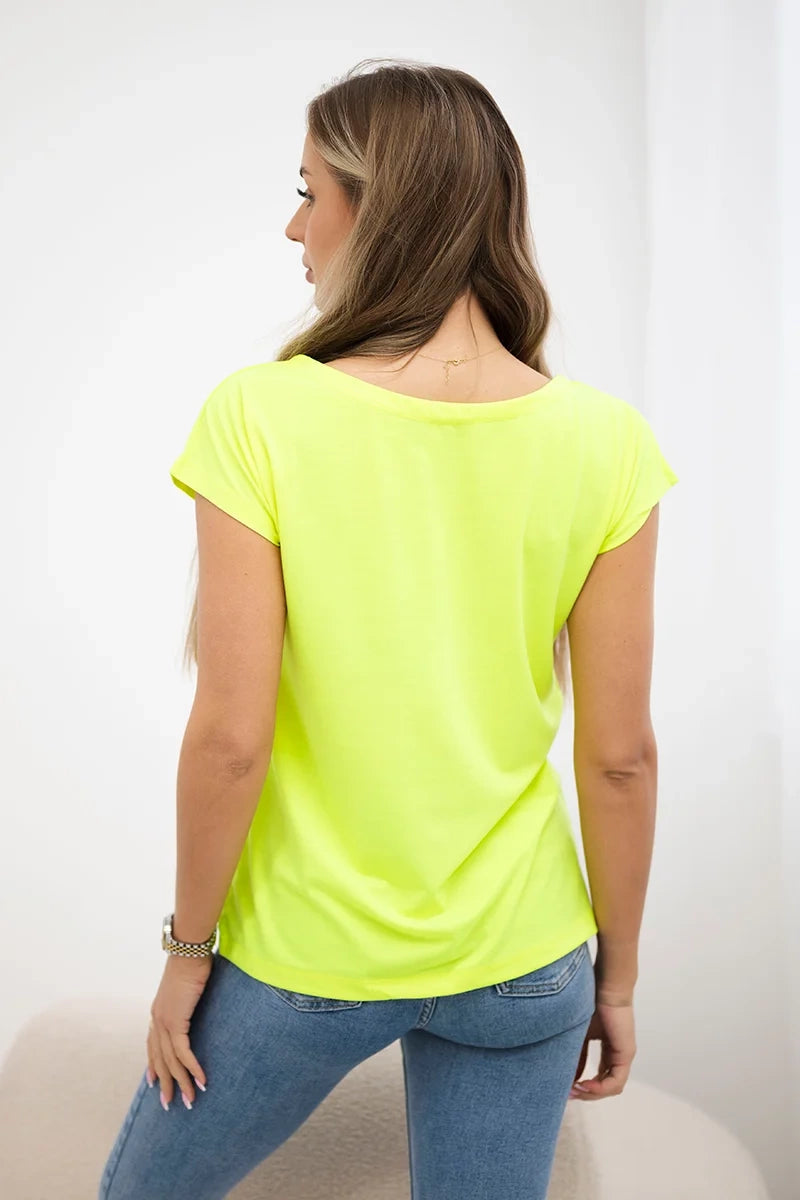 Blúzka s potlačou pier žltý neón+červená univerzálne