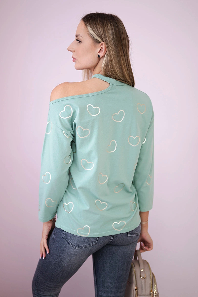 Blúzka s potlačou srdiečok tmavá mäta univerzálne