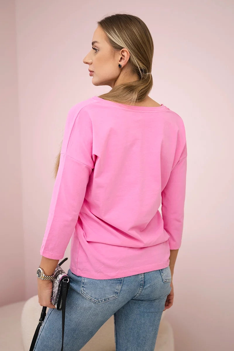 Blúzka s výstrihom do V svetlo ružová univerzálne