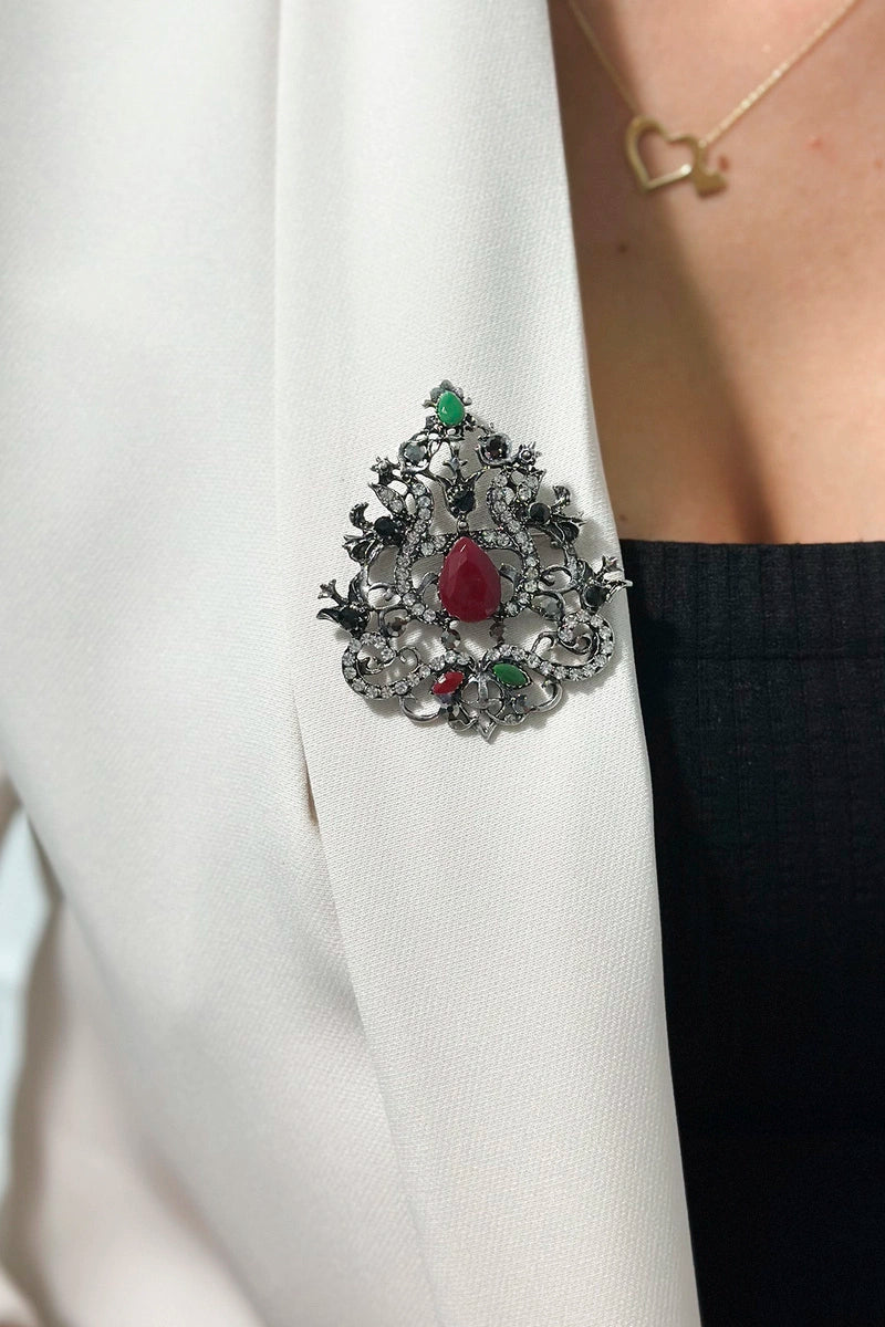 Brošňa XZ459-191 strieborná + červená univerzálne