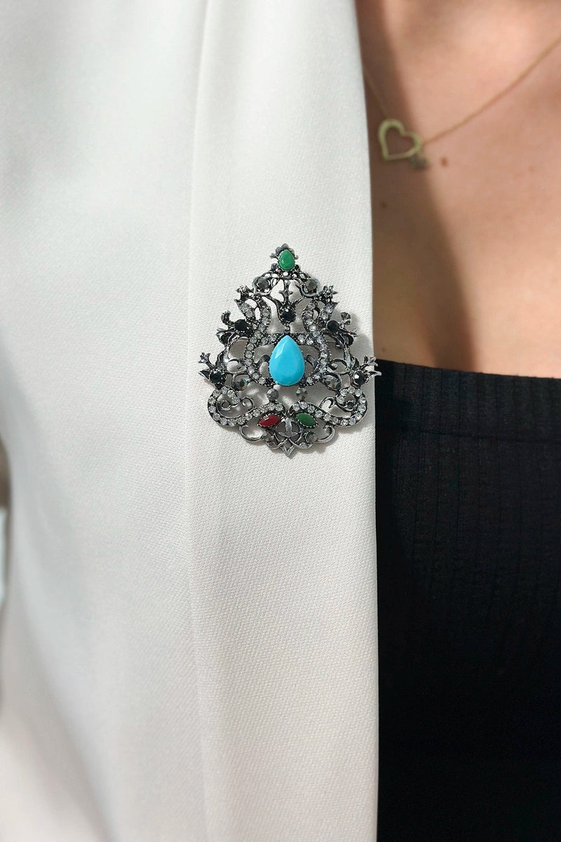 Brošňa XZ459-191 strieborná + modrá univerzálne