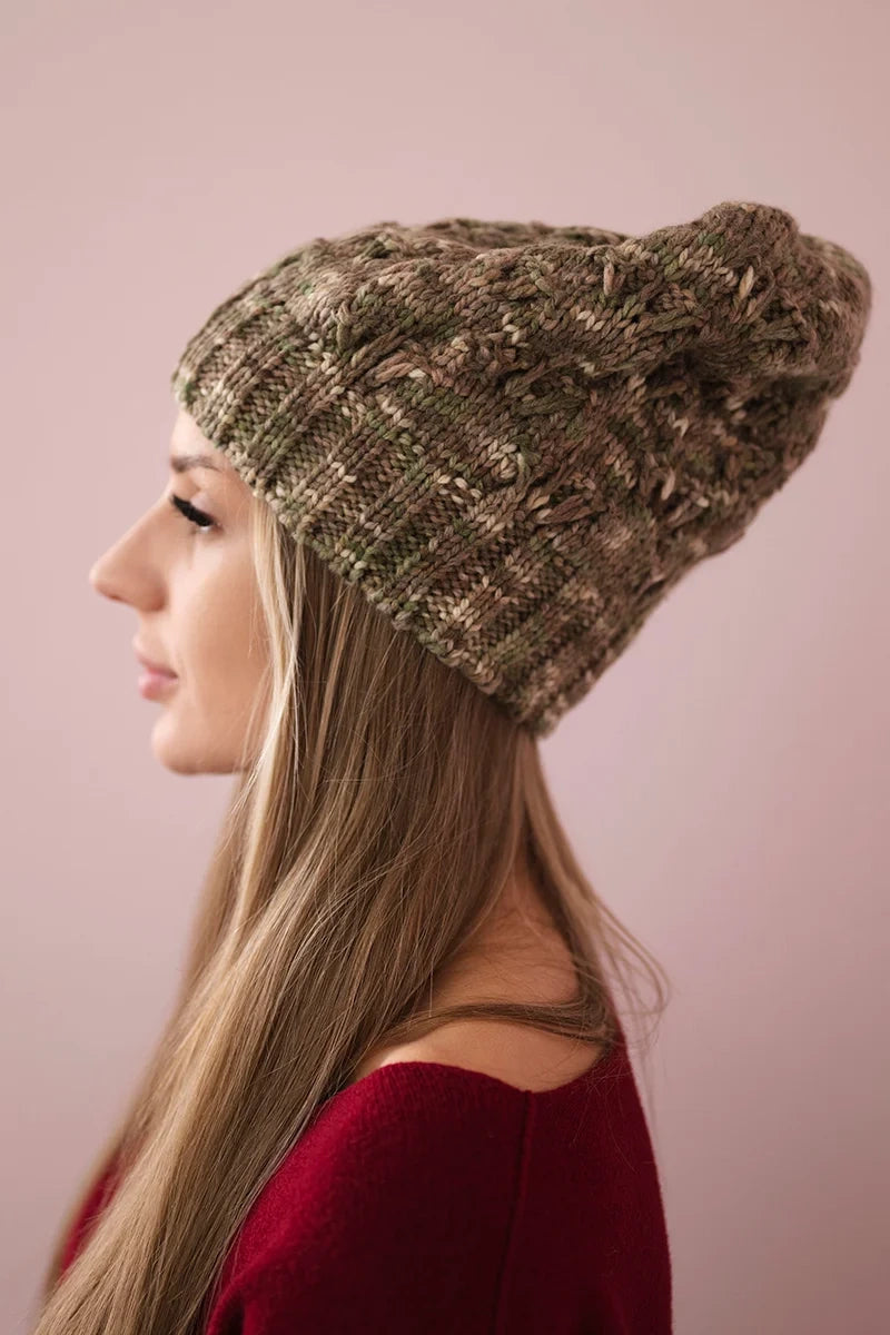Čapica s fleece Roksana K209 cappuccino + svetlé khaki univerzálne