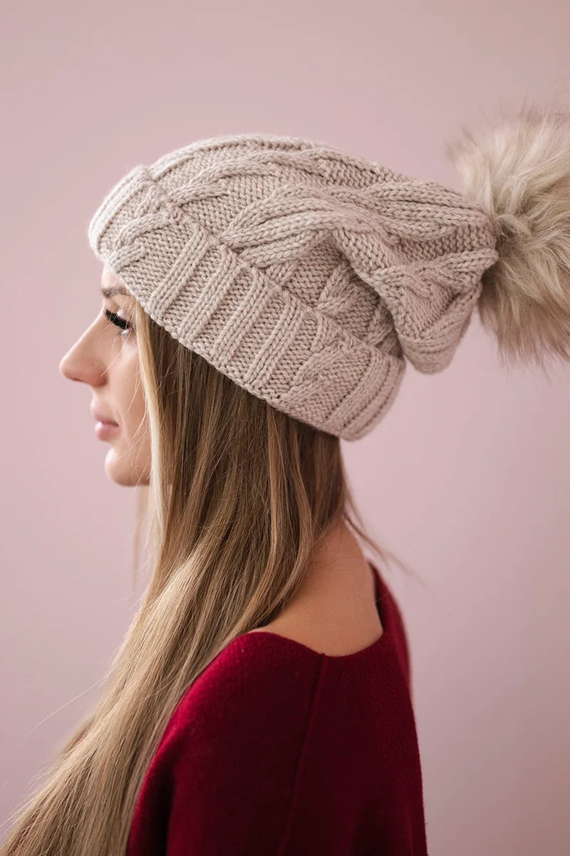 Čapica s fleece Warkocz K226 svetlo béžová univerzálne