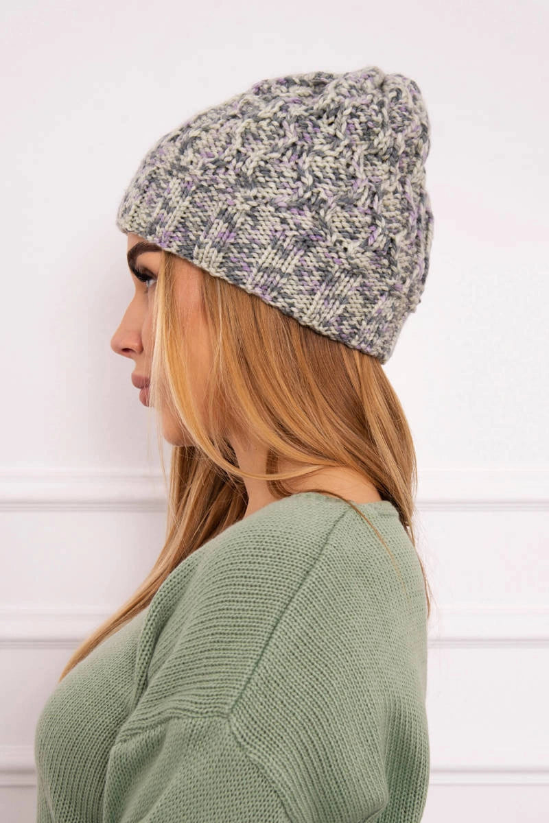 Čiapka s otočením nahor Eliza K205 šedá + fialová + ecru univerzálne
