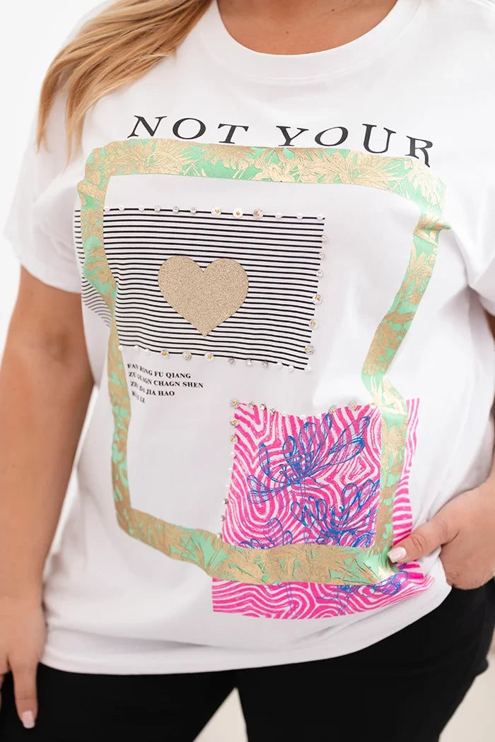 Dámska bavlnená blúzka Plus Size so zlatým nápisom biela + zelená univerzálne