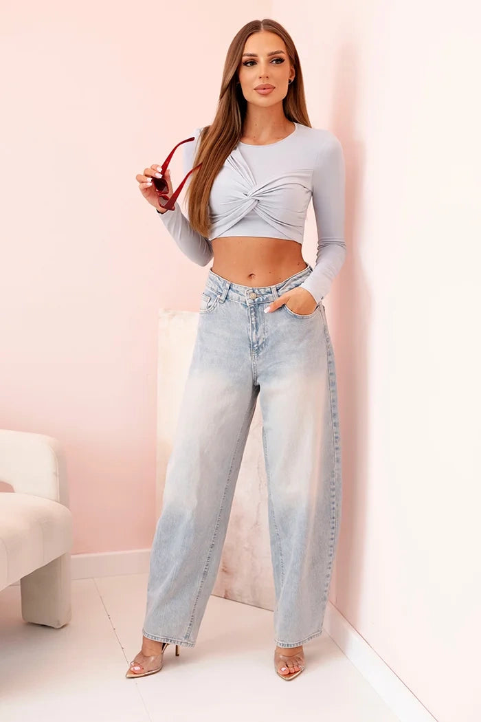 Dámska blúzka s dlhým rukávom a efektnými volánmi na poprsí sivý univerzálne