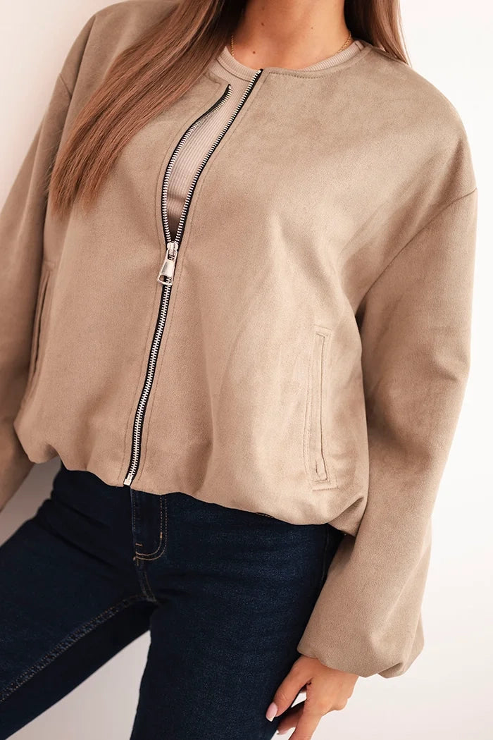 Dámska bunda so zipsom a balónovými rukávmi fango univerzálne